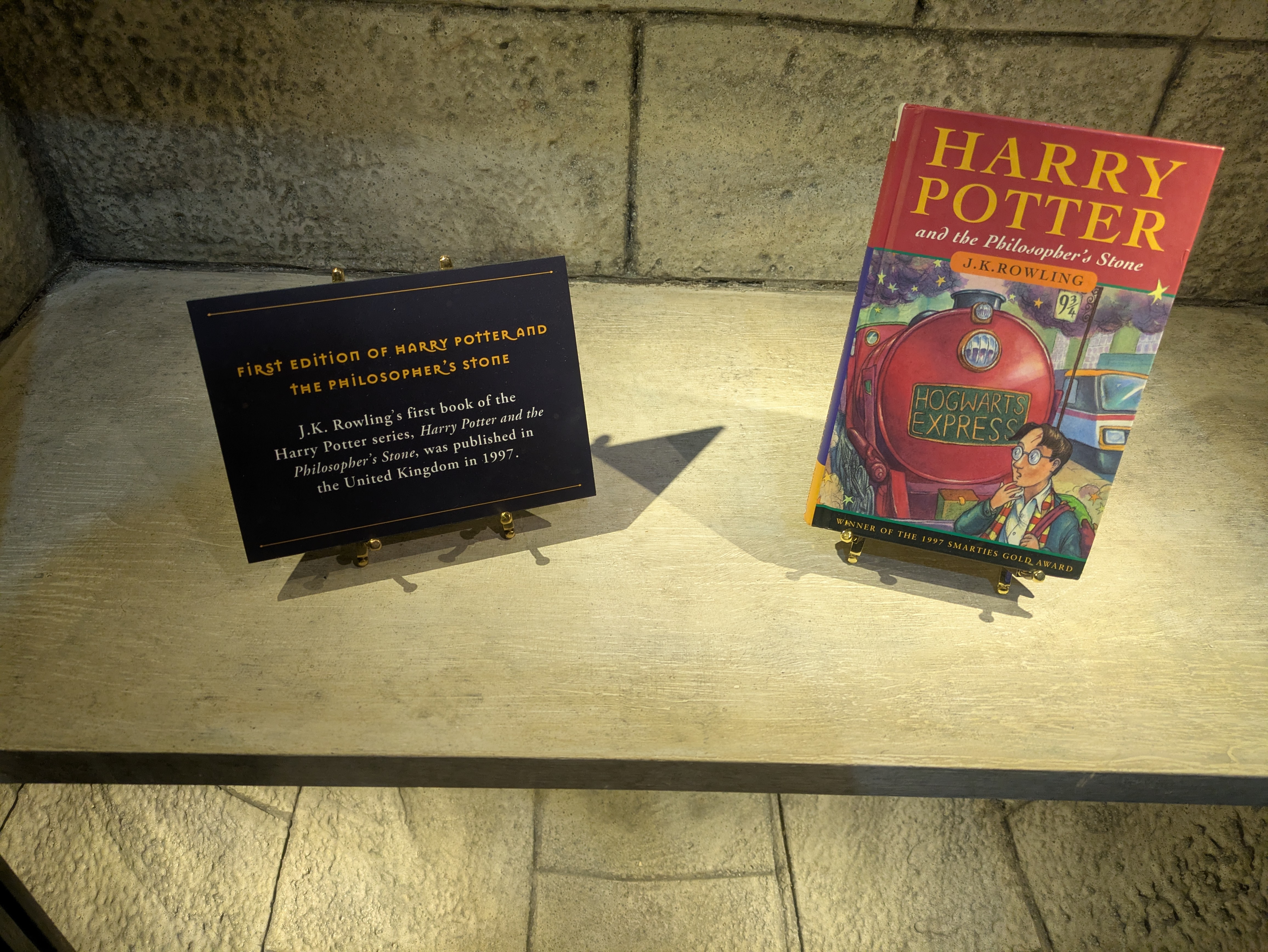 As for us who grew up with Harry Potter in the books and later the movies, they had a bunch a things that you could envy. Like a first edition of the first book prominently displayed in a “vault” with the door looking like Gringotts vault 713. But most of the artifacts came from the movie, showing full costumes from the characters and extras or key pieces from the film. I liked the Sword of Griffondor and Hagrid’s umbrella. Just like a museum they had these displayed in glass cases with small plaques describing what and how it was used. But unlike a museum the information was just enough to keep you interested, but not so much that the kids would whine about having to wait for you. I think a few museums could really learn from this.